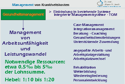 Aktive Gesundheitsförderung, Prävention sowie eine angepasste Personalentwicklung sind notwendig, um Kompetenzen und Loyalität der Mitarbeiter langfristig für die Unternehmen zu sichern. In diesem Zusammenhang ist der Stellenwert des Gesundheitsmanagement und die Aufgabenstellung für alle Akteure, einschliesslich der Betriebsärzte, zu überdenken.